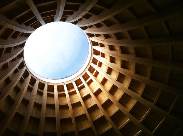承載內部壁是由鋼筋混凝土制成的,并且它們支持的屋頂被彎曲的形狀,大量使用以降低制造成本,膠水層疊木梁用來建造單層防潮膜覆蓋的屋頂。
