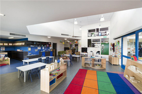 該建筑位于Plenty 河谷的中心位置,以蜿蜒的Plenty河為參照,創建出平滑的墻面和外廊曲線,猶如水流和漩渦穿過中心空間,而屋頂邊線則是對遠處Kinglake山脈輪廓線的呼應。幼兒園設計
