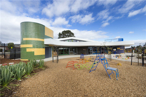 Hazel Glen兒童家庭中心使用釉磚拼圖創造出一種有活力的效果,加上豐富的木材表達,共同構筑一個熱情的家庭中心。這個藝術式的建筑包括四個兒童保育室、婦幼健康咨詢室、大小不一的活動室以及一個靈活的中心集合空間。