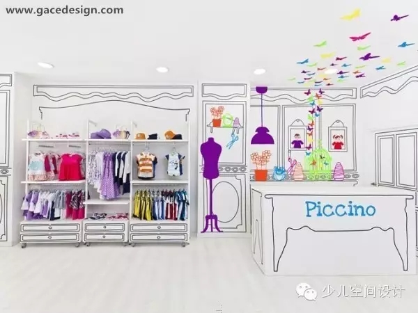 簡潔的設(shè)計(jì),低成本的花銷,卻營造了一個(gè)與眾不同的兒童服裝店。這,就是設(shè)計(jì)的魅力。