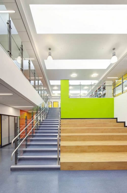 中央學習空間自然采光,通過一排排的北向窗戶進行通風,這些窗戶與建筑管理系統(tǒng)融為一體,以確保創(chuàng)造一個舒適的學習環(huán)境,同時減少生命周期成本。廣場為學生和來訪者提供了清晰、明確的方向導引,由于空間開放,布局暢通,因此有助于減少欺凌弱小的行為發(fā)生。
