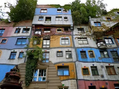 由藝術(shù)家改行為建筑師的佛登斯列·漢德瓦薩在好友的幫助下設(shè)計(jì)建造了百水公寓。百水公寓建于1983至1985年間,包含了一棟一層樓和一棟兩層樓的公寓。百水公寓包含了很多自然元素,樹(shù)木會(huì)在房間內(nèi)生長(zhǎng),樹(shù)木的枝干在船外延伸。不過(guò)這樣設(shè)計(jì),經(jīng)過(guò)歲月的沉淀,想必會(huì)被植被慢慢吞噬。