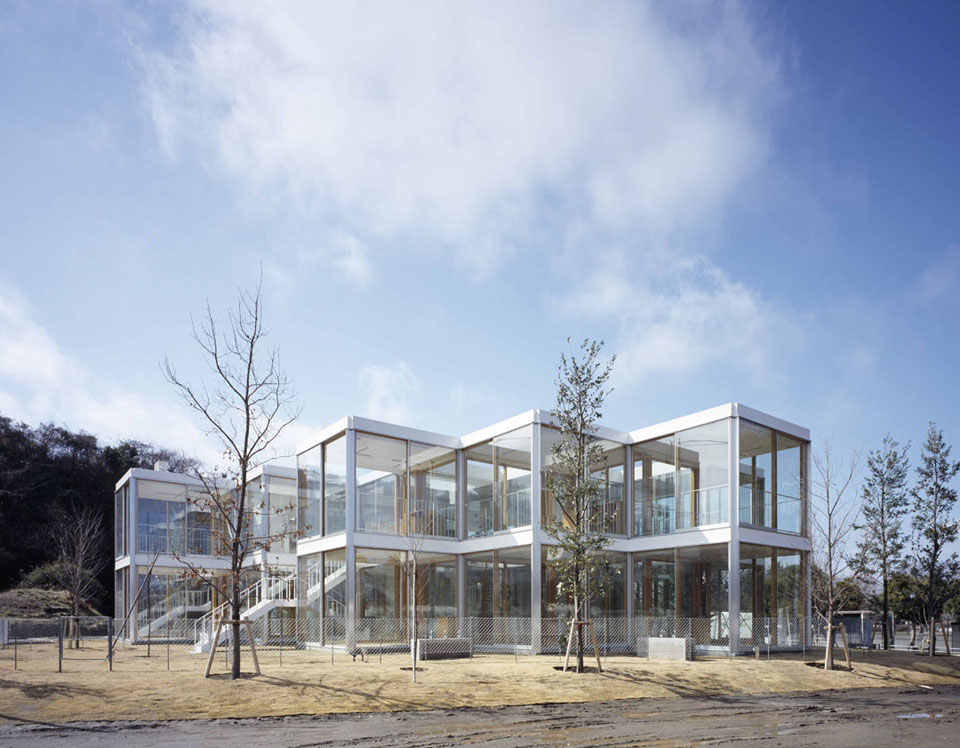 橫濱市一片美麗的森林高地的一塊空地上被用來建筑基督教會(huì)學(xué)習(xí),其中一層作為幼兒園,二次則是高年級(jí)學(xué)校,位于森林四周肯定是有美麗的自然環(huán)境的,所以怎么去最大限度的發(fā)揮這個(gè)優(yōu)勢(shì)是設(shè)計(jì)師展開幼兒園設(shè)計(jì)的個(gè)需要考慮的,因此設(shè)計(jì)師設(shè)計(jì)了一個(gè)向著四周全面開放的透明建筑,而且還在建筑的布局中在院子內(nèi)種植著綠樹,園內(nèi)院外的綠植相映形成一道靚麗的風(fēng)景。