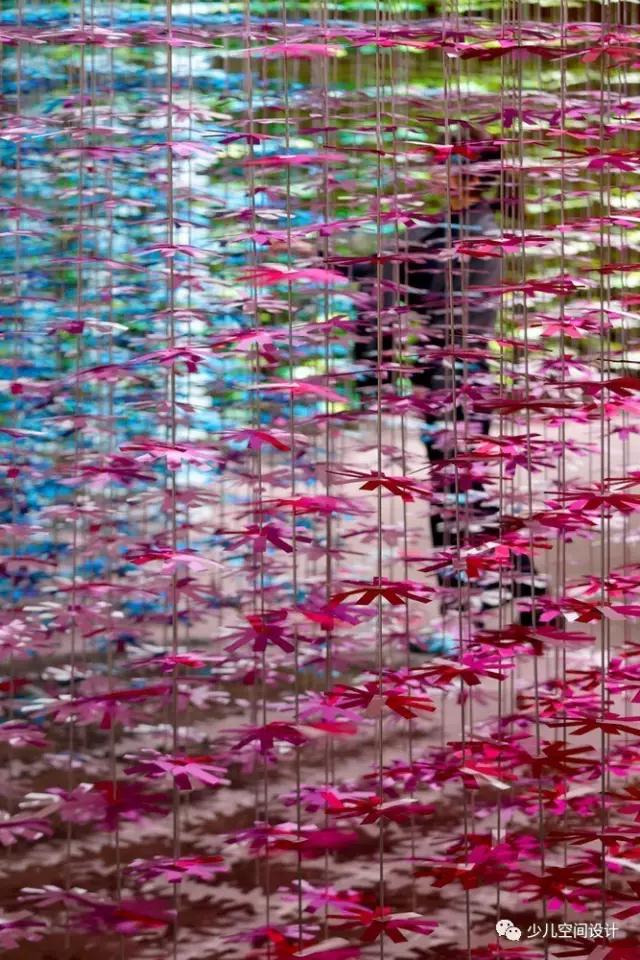 “當一個在空間中的靜止物體與不同的顏色重疊時,它會讓人產生幻覺,并能釋放出巨大的能量” 設計師說道。(幼兒園設計)