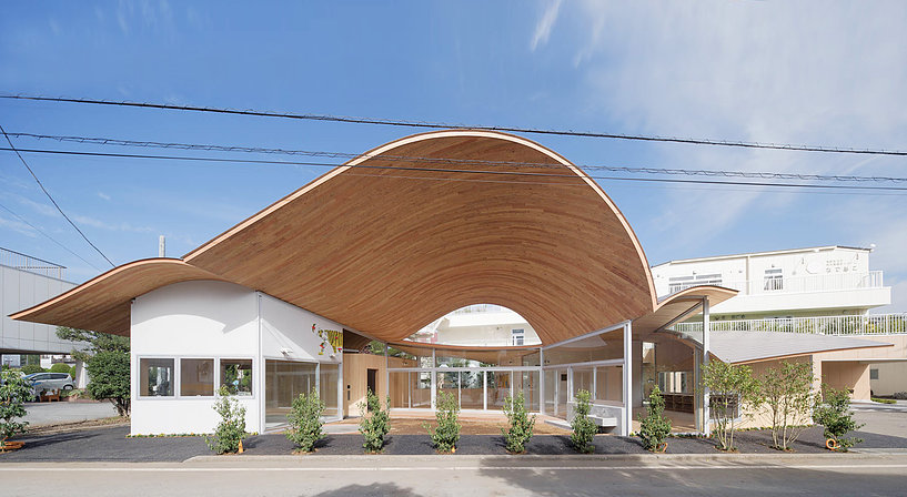 【日本寧靜小鎮一個很有特點的大波浪屋頂的幼兒園】