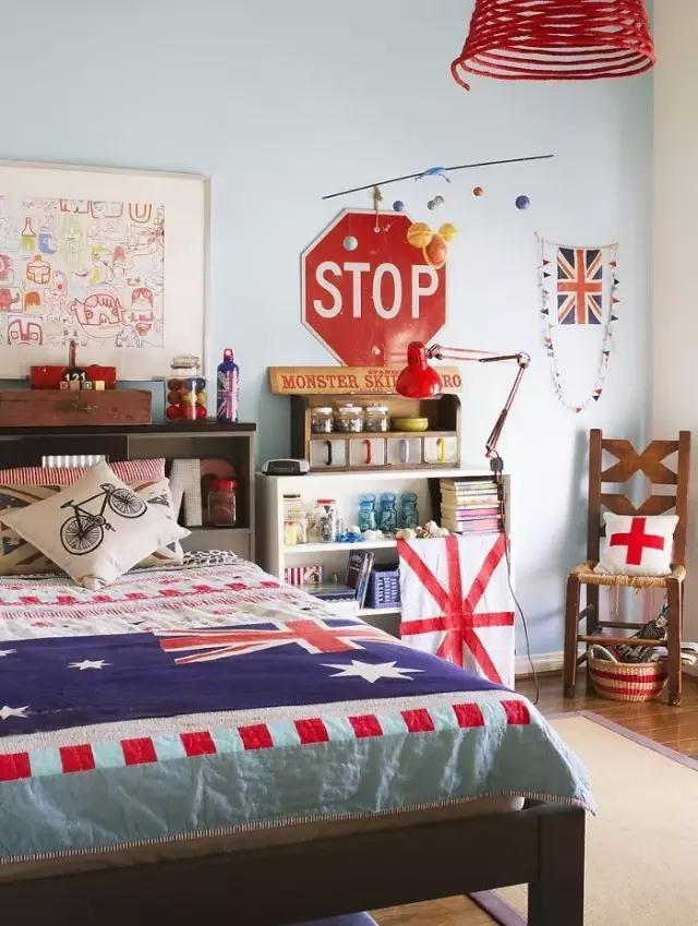 當然,兒童房的色調是需要不斷改變的,幼兒時期可能用一些強烈的對比色和夸張的圖案來激發他的聯想。少兒時期改用中性一點的,冷一點的色調,才符合他更為沉穩的審美需求。