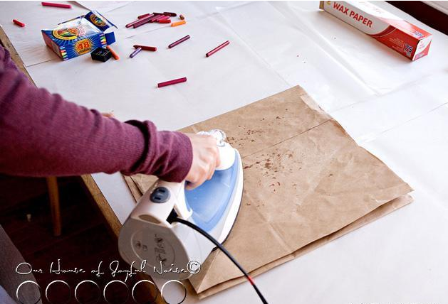 熨燙的過程中,老師們要不定時的查看,是否還有沒融化的蠟筆屑。