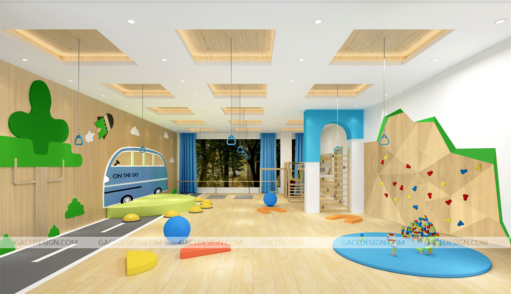 園舍以平房為佳,如在室內無法做到,幼兒園裝修也應注意到安全設施,如窗戶、樓梯的安全等。幼兒教育是一種學前教育,觀察一下,你文化空間設計所中意的幼兒園是不是讓幼兒像小學生一樣寫字讀書,如果是那樣,那真是抹殺幼兒學習興趣——太早地開始課堂教學會造成幼兒的反感,而且會傷害到小寶寶的手腕肌肉,有的孩子因為在幼兒園已經學了一年級的課程,產生“我都會了”的心理,上了小學反而不好好學習。所以,幼兒園教學應區(qū)別于學校教學,幼兒園裝修注重通過游戲、音樂、繪畫等達到德、智、體的兼顧,認字不應占教學的主導地位。